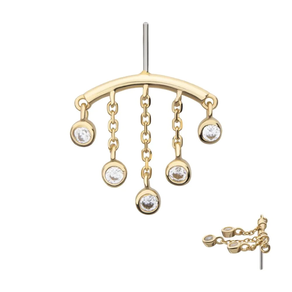 The 14K Curved Bar With 5-Chain & Dangle is an exquisite piece designed to enhance any outfit.