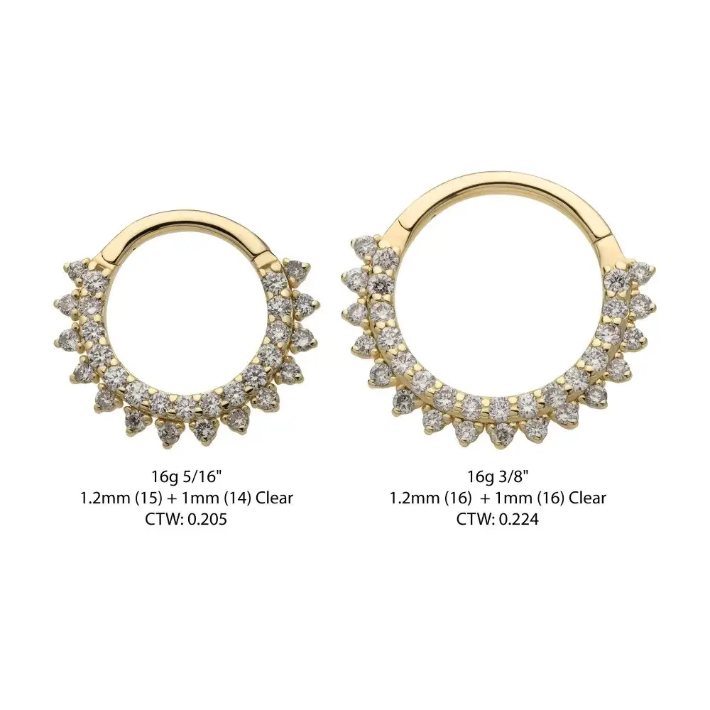 The 14K Spiked Diamond Clicker is a fierce yet elegant piece, perfect for adding bold sparkle to your jewelry collection. Its prong-set diamonds paired with edgy gold spikes create a stunning contrast—ideal for turning heads, day or night.